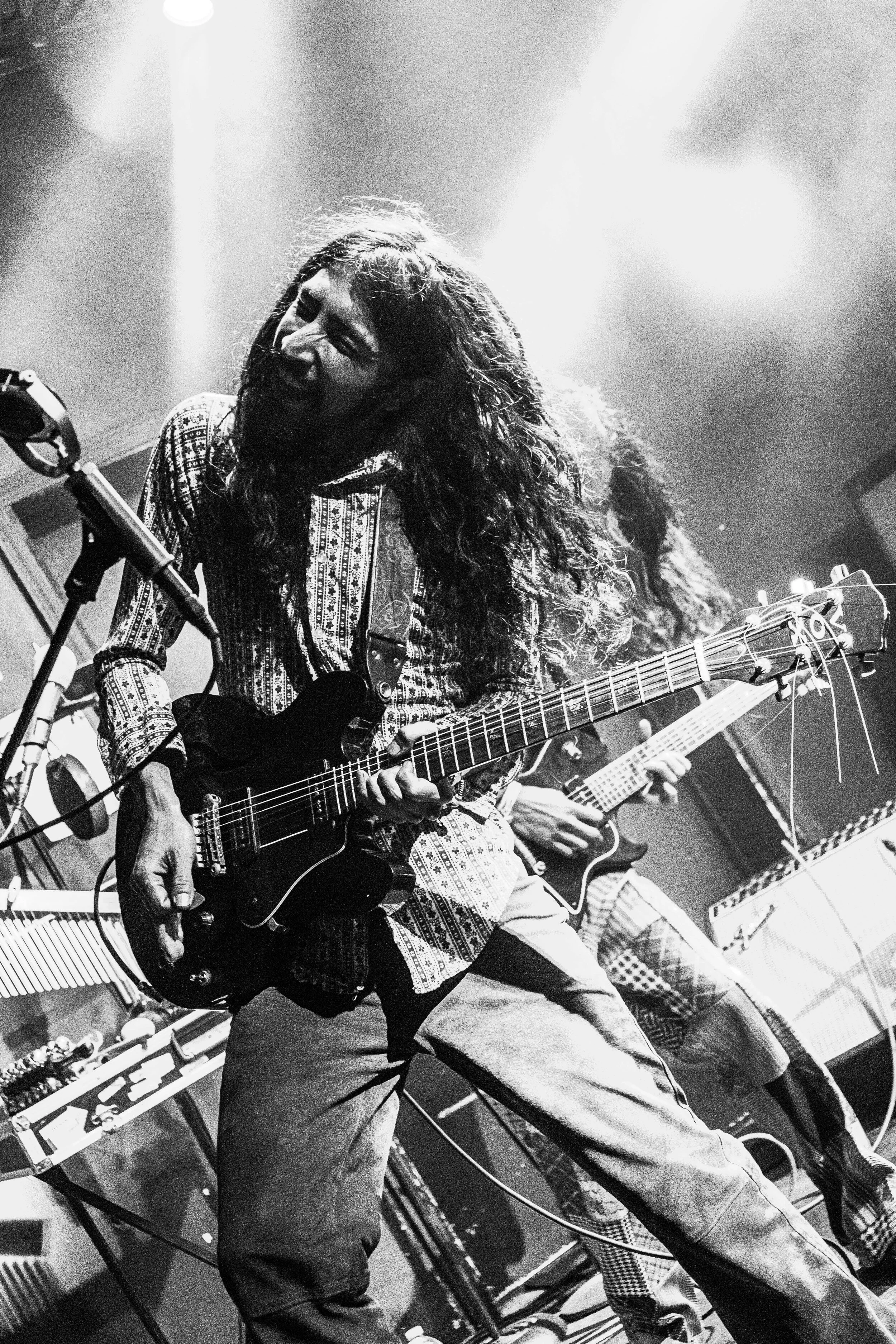 Daoud Popal (guitar) performing with his signature style during Tree Smoke.